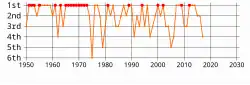 In den 80er und 90er Jahren ließ die Dominanz des Rekordmeisters nach; aber die „New York Yankees von Japan“, wie sie manchmal genannt werden, bewiesen mit elf weiteren Ligatiteln und fünf Meisterschaften seitdem (zuletzt 2002), dass immer mit ihnen zu rechnen ist. Ein einziges Mal (1975 unter Shigeo Nagashima als Manager) beendeten sie die Saison als Letzter der Central League und in ihrer Geschichte erreichten sie seit 1936 eine Siegquote von .587 (mit 5062 Siegen, 3566 Niederlagen und 264 Unentschieden).