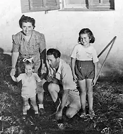 Die einjährige Yona Wallach im Kreis ihrer Familie 1945, von rechts nach links: Schwester Nira, Vater Michael, Mutter Esther und Yona Wallach