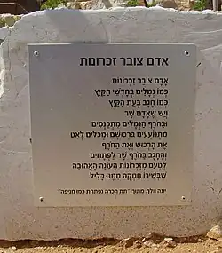 Gedicht אדם צובר זכרונות (dt.: Ein Mensch sammelt Erinnerungen), in Stein gemeißelt