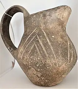 - Phase A: handgefertigte Gefäße in dunklem Ton, häufig mit Ritzdekor, gelegentlich mit weißen Verzierungen
