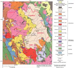 Fast alle Landschaftsformen im Gebiet des Parks stammen vom Granit des Sierra-Nevada-Batholith. Mit dem Begriff Batholith wird ein Pluton bezeichnet, dessen Ausmaß ungewöhnlich groß ist und der meist aus mehreren Intrusionen magmatischen Gesteines ähnlicher Zusammensetzung und Alters besteht. Etwa fünf Prozent des Parks, hauptsächlich an seinem östlichen Rand nahe dem Mount Dana gelegen, besteht aus durch Metamorphose verändertem vulkanischem und sedimentärem Gestein. Erosionen, die auf verschiedene Arten auf die durch Anhebung entstandenen Verwerfungen einwirken, gelten als Auslöser für die Entstehung von Tälern, Canyons, Kuppeln und anderen Formen, die das heutige Landschaftsbild prägen.