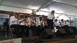 Üblicherweise spielen in ihr neun bis elf Musiker: zwei Trompeten, zwei Posaunen, Klarinette und Saxophon, Sousaphon oder Tuba, Snare Drum und Basstrommel.