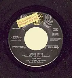 Your Song ist eine Pop-Ballade des britischen Sängers und Komponisten Elton John; der Liedtext wurde von Bernie Taupin geschrieben. Das Stück erschien im Oktober 1970 als Singleauskopplung aus Johns zweitem, selbstbetitelten Album mit der B-Seite Take Me to the Pilot.