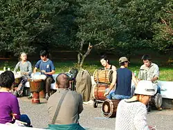 Der Park war in den 1980er Jahren ein Treffpunkt für die „Bambussprössling-Sippe“ (竹の子族, take-no-ko zoku) und ist immer noch ein beliebter Treffpunkt für Musik- und Tanztruppen.