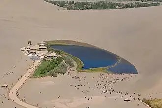 Der See mit seiner Pagode vermutlich aus der Han-Dynasty, die „singenden“ Sanddünen (Mingsha Shan) und die umliegende Wüste bilden eine Touristenattraktion[6], die oft in Kombination mit den nahe liegenden Mogao-Grotten besucht werden. Beide Gebiete sind Teil des Dunhuang UNESCO Global Geopark[7][8].