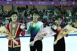 - ↑ http://www.cbc.ca/sports/figureskating/yuzuru-hanyu-suffers-nasty-collision-still-wins-silver-at-cup-of-china-1.2828773