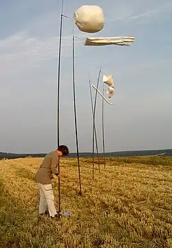 Yvonne Richter beim Aufbau ihrer Arbeit „Windsocks“, 2005
