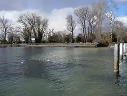 Das Zürichhorn, rechts die Mündung des Hornbachs