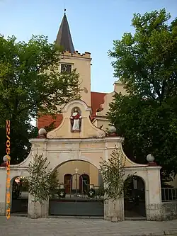 - Die römisch-katholische St.-Katharina-Kirche (poln. Kościół św. Katarzyny) bestand bereits im 14. Jahrhundert. 1904 wurde das gotische Kirchenschiff abgerissen und durch einen größeren Neubau ersetzt. Der Kirchturm blieb erhalten.[9] Das Kirchengebäude steht seit 1966 unter Denkmalschutz.[10]