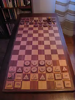 Eine Aufstellung nebeneinander in einer Reihe (wie beim Schach) hätte den Spielfluss enorm behindert, denn die vorderste Reihe wäre nur von Vielfachen besetzt gewesen, die sich zum einen nur sehr schwer bewegen und zugleich auch vom Gegner nur sehr schwer beseitigen ließen.[13]