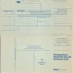 - ↑ Postscheckordnung (PostSchO). In: Bundesgesetzblatt Teil I. Nr. 125, 4. Dezember 1969, S. 2159–2163 (bgbl.de [PDF]).