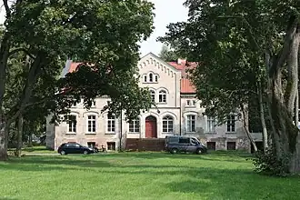 Edmund von Massenbach, 1830 auf Salleschen geborener Gutsbesitzer und ab 1880 den Freiherrntitel tragend, ließ in der Mitte des 19. Jahrhunderts das noch heute stehende Gutshaus errichten. Zum Haupteingang führt eine originelle gusseiserne Treppe mit Pflanzenmotiven und geometrischen Mustern.[3] Das Gebäude befindet sich heute in guter Verfassung und ist in Privatbesitz.