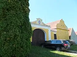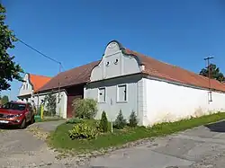 - Gehöfte Nr. 20 und 25 am Dorfplatz, im südböhmischen Bauernbarockstil
