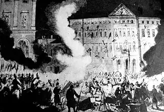 Während des Januaraufstandes wurde am 19. Oktober 1863 von einem der Fenster des Palastes ein Bombenattentat auf den russischen Statthalter Friedrich Wilhelm Rembert von Berg verübt. Das Attentat misslang, da die geworfenen Bomben die Kutsche Bergs verfehlten und stattdessen einen berittenen Begleiter und dessen Pferd töteten. Als Vergeltungsaktion stürmten russische Truppen das Gebäude. Sie drangen in die Wohnungen ein, warfen Mobiliar aus den Fenstern und zerstörten die Inneneinrichtungen.