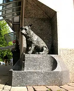Historischer Trinkbrunnen aus dem Jahre 1927 mit Hundetrinkstelle in Bodennähe