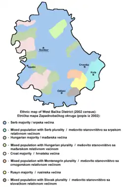 Zur Volkszählung 2002 stellten die Serben die Bevölkerungsmehrheit (62 %), weitere Volksgruppen waren Magyaren, Bunjewatzen, Kroaten, Russinen, Slowaken, Montenegriner und andere.