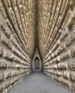 Etwa 200 Hügelgräber lassen sich inmitten der Stadt Kertsch und in ihrer unmittelbaren Umgebung erkennen.[1] Der Zarenkurgan liegt im Nordosten der Stadt, etwa 5 km vom Zentrum entfernt, nahe beim Denkmal für die „Verteidigung der Steinbrüche von Adzhymushkai“ (Оборона Аджимушкайских каменоломен). Der Erdhügel ist knapp 20 Meter hoch und hat an der Sohle einen Umfang von rund 250 Metern. Er birgt eine Grabkammer mit quadratischem Grundriss (4,39 × 4,35 Meter), der allmählich in die kreisrunde Form einer präzis angelegten Kragsteinkuppel („Falsches Gewölbe“) übergeht. Die Gesamthöhe der Grabkammer beträgt 8,84 Meter. Eindrucksvoll ist auch der großzügige Dromos, ein 2,80 Meter breiter und 37 Meter langer, spitzgiebliger Zugangskorridor, der ebenfalls in Kragsteinbauweise ausgeführt ist. Beide Gebäudeteile sind aus gelblichen Kalksteinblöcken gefertigt und haben einen Boden aus einer gestampftem Mischung von Lehm, Kalk und Kalkstein.
