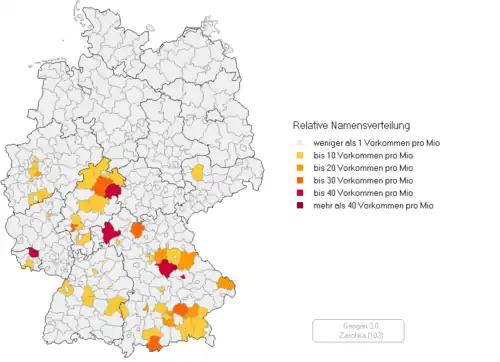 - ↑ a b c Verbreitung des Familiennamens in Deutschland: Geogen von Christoph Stoepel