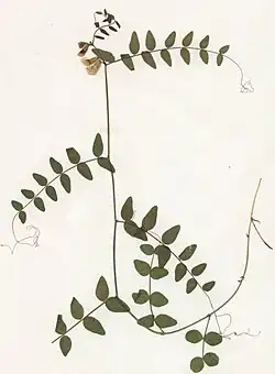 Vicia sepium f. albiflora (Herbarbeleg bitte keine Pflanzenteile aus Naturbeständen entnehmen): Eine anthozyanarme Form der Zaun-Wicke mit reinweißen Blüten