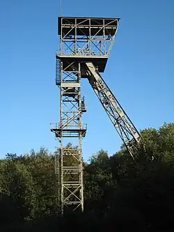 Standorte von Schacht 2 und 1 mit Schachtgerüst von Schacht 1 -