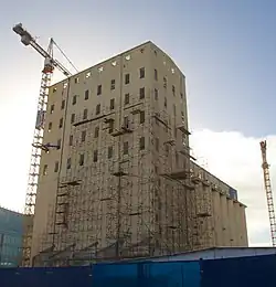 Die zylinderförmigen Silos wurden unterhalb des Daches teilweise angeschnitten,[11] von außen bleibt ihre Form sichtbar. Das Gebäude erhielt im zentralen Bereich ein Glasdach und durch Herausnahme oder Anschnitt einiger Silos ein „kathedralengleiches“ Atrium.[11] An der Außenwand oberhalb der Ebene des Dachgartens wurden Glaspaneele angebracht, die leicht konvex gekrümmt sind und somit nachts die Lichter der Waterfront wie ein „Signalfeuer“ reflektieren.[11]
