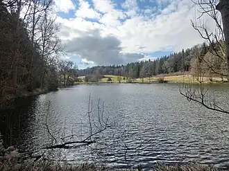 Das Einzugsgebiet des Weihers wird zu 27 Prozent für die Landwirtschaft – davon 40 Prozent Grün- und 23 Prozent Ackerland – genutzt, die restliche Fläche verteilt sich auf Wälder und einen Golfplatz.