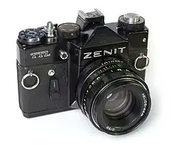 Zenit stellt seit 1951 oder 1952 Spiegelreflexkameras mit Wechselobjektiven, die von der Leica II abgeleitet wurden. Dazu wurde ein Spiegelkasten „angebaut“. Dementsprechend verfügten die ersten Zenit-Kameras auch über einen Objektivanschluss M39x1 wie die Leica. Die Objektive können aber wegen des unterschiedlichen Auflagemaßes nicht an der Leica verwendet werden.