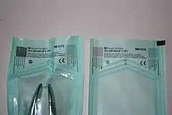 Verpackung mit Farbindikator zur Kontrolle des Sterilisationserfolges