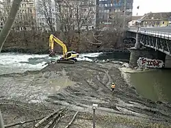 Im Jänner 2017 wurde in Graz mit dem Bau des Murkraftwerkes begonnen; ein Flusskraftwerk mit mehreren Metern Höhe Aufstau, etwas Gewässerabsenkung im Unterwasser, der Unterbrechung des Geschiebetransports im Flussbett und wesentlicher Änderung der Befahrbarkeit des Flusses mit Booten. Mit dem Aufstau wird das Gewässer über längere Strecken tiefer, sinkt hier die Fließgeschwindigkeit, kommt es zu vermehrter Ablagerung von feinem Sediment, das auch organische Stoffe, etwa Blattmaterial aus der Ufervegetation enthält. Der biologische Abbau organischen Materials verzehrt Sauerstoff, der nur von der Wasseroberfläche her aus der Luft nachgeliefert werden kann.