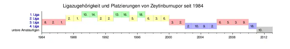 Zeytinburnuspor ist ein türkischer Sportverein aus dem Istanbuler Stadtteil Zeytinburnu. Die Spiele werden im Zeytinburnu-Stadion ausgetragen, in dem 16.000 Zuschauer Platz finden. Der Verein spielte in den 1980er und 1990er Jahren insgesamt fünf Spielzeiten in der Süper Lig und befindet sich in deren Ewigen Tabelle auf dem 48. Platz.[1]