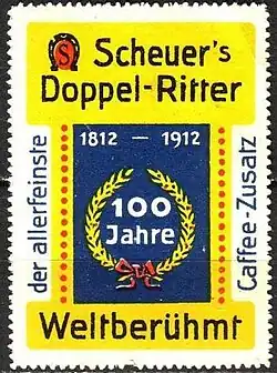 Am 1. Oktober 1894 wurde die Wort-Marke „Echt Scheuer's Doppel-Ritter“ angemeldet.