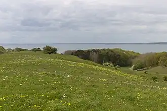 Er liegt an der Westseite der sogenannten Zickerschen Berge, wenig östlich des Zickersches Höft.[2] Der etwa 65 Meter hohe, trockene Hügel ist Teil des Biosphärenreservates Südost-Rügen und wird extensiv mit Schafen bewirtschaftet.