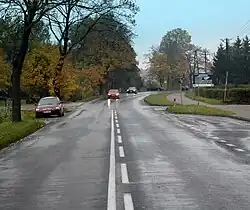 Durch den Ort führt von Nord nach Süd die Woiwodschaftsstraße 102, deren Verlauf hier der ehemaligen Reichsstraße 161 entspricht.