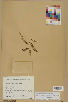 Zierlicher Wimperfarn (Woodsia pulchella), Herbarexemplar | ||||||||||||