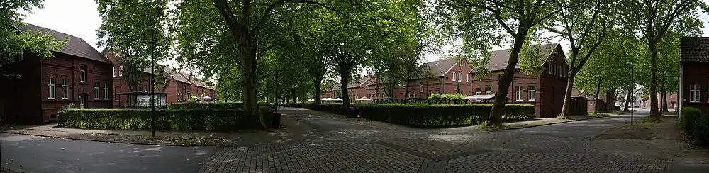 Sie wurde von der Harpener Bergbau AG 1898 für die Familien der Bergarbeiter der Zeche Preußen gebaut. Pro Haus konnten vier Familien unterkommen, die Stadt erlaubte allerdings maximal drei. Große Gärten, gerade Baumreihen, Stallungen hinter den Häusern und dort angebrachte Toiletten (eine für jeweils zwei Familien) waren Baustandard der damaligen Zeit. Ungewöhnlich war die Vereinbarung der Stadt mit dem Bauherrn über den Aufbau und den Unterhalt der Infrastruktur, dies war zu großen Teilen der Bergbau AG auferlegt worden. So musste sie nicht nur für die Schulen, Kirchen und die Polizeistation aufkommen, sondern auch das Gehalt des Polizeibeamten zahlen. Außerdem wurde dadurch 1896 der erste Bahnhof in Lünen erbaut, der vorrangig für den Kohle- und Arbeitertransport gedacht war.