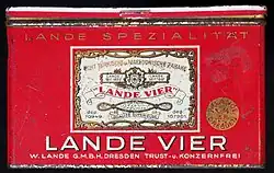 1897 gründete Wilhelm Lande seine Zigarettenfabrik in Halberstadt und verlegte sie um die Jahrhundertwende nach Dresden. Partner war dabei Max Lande, ein Verwandter von ihm, der aus Dessau stammte.