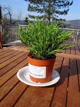 Junger Zimmerbambus (Pogonatherum paniceum) als Topfpflanze | ||||||||||||