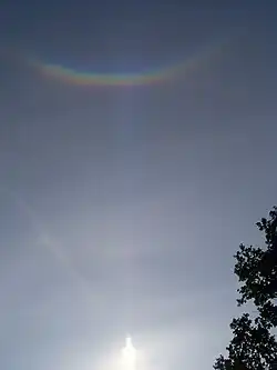 Steht die Sonne nahezu im Zenit, kann man unter ihr manchmal einen Zirkumhorizontalbogen beobachten.