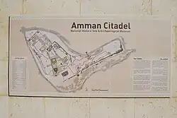 Bei Ausgrabungen wurden Spuren menschlicher Besiedlung bereits aus der Mittleren Bronzezeit (1650–1550 v. Chr.) in Form eines Grabes mit Tongefäßen und Skarabäussiegeln entdeckt.[1] Während der Eisenzeit befand sich in der Zitadelle die Hauptstadt der Ammoniter, die als „Rabbah“ oder „Rabbath Ammon“ bekannt war. Die Amman Citadel Inscription stammt aus dieser Zeit und gilt als die älteste bekannte Inschrift in ammonitischer Sprache, geschrieben im phönizischen Alphabet.[9] Seit der hellenistischen Zeit blieb die Stätte unverändert, doch die Töpferei zeugt von der dortigen Aktivität.[1] Die Stätte wurde um 30 v. Chr. römisch und kam schließlich im Jahr 661 n. Chr. unter muslimische Herrschaft.[10] Unter der Herrschaft der Ayyubiden im 13. Jahrhundert verlor der Zitadellenhügel an Bedeutung, doch in dieser Zeit wurde der Wachturm angebaut.[11]