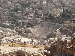 Das Römische Theater und die Innenstadt von Amman vom Zitadellenberg aus gesehen (2013)