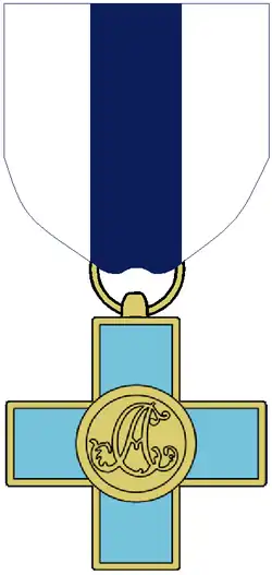 Der Orden war ein blau emailliertes einfaches Kreuz mit goldener Einfassung. Im runden goldgefassten Mittelschild steht auf der Vorderseite mit goldener Inschrift die verschlungenen Initialen des Stifters C A und auf der Rückseite die Worte als Ordensdevise AL MERITO CIVILE 1831.