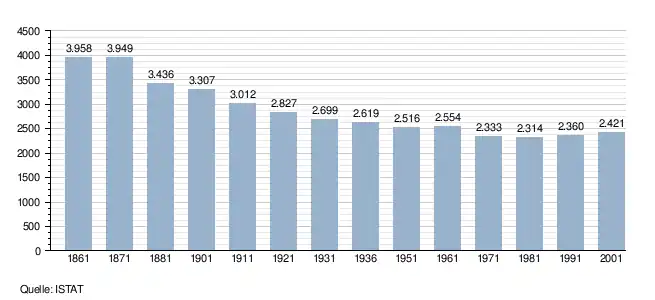 - ↑ Bilancio demografico e popolazione residente per sesso al 31 dicembre 2024. ISTAT. (Bevölkerungsstatistiken des Istituto Nazionale di Statistica, Stand 31. Dezember 2024).