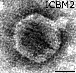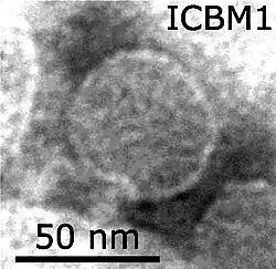 Lentibacter-Phage ICBM1 wurde (wie ICBM2, s. u.) 2019 aus einer Wasserprobe der südlichen Nordsee angereichert, die während einer Algenblüte gesammelt wurde. Der Stamm ICBM3 wurde durch Sequenzierung der Phagenanreicherung gewonnen. Die Transmissionselektronenmikroskopie (TEM) zeigte, dass Phage ICBM1 ein isometrisches Kapsid (d. h. mit ideale-regelmäßigem Ikosaeder) mit hexagonalen Querschnitten von 58,7 ± 3,7 nm und einem kurzen Schwanz besitzt, d. h. eine podovirenartige Morphologie. Im aus den Genomdaten ermittelten Phylogenetischen Baum bildeten die Phagen ICBM1, ICBM2 und ICBM3 zusammen mit dem Roseobacter-Virus SIO1 und seinen Verwandten, dem Celeribacter-Phagen P12053L und mehreren anderen Genomen aus der Metagenomik von Umweltproben eine stark unterstützte Klade. Innerhalb dieser hatten bei den Analysen alle Phagen mit Ausnahme von zwei Umweltgenomen eine Cobalamin-abhängige Ribonukleotidreduktase. ICBM1 infiziert nur Lentibacter sp. SH36, den Wirt der ursprünglichen Isolation. ICBM1 hat eine Genomgröße von 40.163 bp (Basenpaaren) und einen G+C-Gehalt von 47,0 %, ICBM3 hat eine Genomgröße von 40.498 bp und einen G+C-Gehalt von 47,30 %.[3][4]