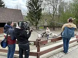 Fernsehaufnahmen im April 2022: Zoo-Chefin im Gehege der Minipferde