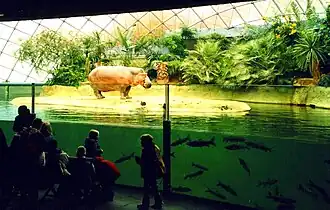 Im Zoologischen Garten Berlin wurde 1997 ein bemerkenswerter Neubau für Flusspferde fertiggestellt. Zwei Glaskuppeln unterschiedlicher Größe wölben sich über naturnahe Wasserlandschaften, die Flusspferde und Zwergflusspferde beherbergen. Das zentrale Gehege für Flusspferde besteht im Grunde aus einem großen naturnahen Wasserbecken und einer Landinsel in dessen Mitte. Der Besucherraum ist so angeordnet, dass man die amphibisch lebenden Tiere auf gleicher Höhe, ähnlich einem Aquarium, durch Panzerglas unter Wasser beobachten kann. Über Schleusen ist das Innenbecken mit einem Außenbecken verbunden, so dass es den Tieren im Sommer möglich ist, selbständig vom Außen- ins Innenbecken zu wechseln. Ein kompliziertes Filtersystem und eine Schilfkläranlage sorgen für klare Sicht auf die sich unter Wasser bewegenden Flusspferde. Entworfen wurde dieser Bau vom Büro des Münchner Architekten und Landschaftsarchitekten Jörg Gribl, der zuvor zahlreiche Bauten im Münchner Tierpark Hellabrunn entworfen und realisiert hatte.