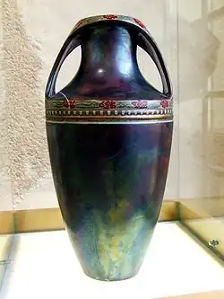 Ihre Beliebtheit erreichten die Ziergefäße der Zsolnay-Keramikfabrik aufgrund ihrer künstlerischen Ausführung und der speziellen Techniken. Die Keramiken werden mit einer besonderen Glasur überzogen, die nach dem griechischen Wort für Morgenröte „Eosin“ benannt ist. Die technischen Neuerungen der Manufaktur sind auf den Gründer der Zsolnay-Manufaktur, Miklós Zsolnay, zurückzuführen. Bekannte Beispiele dafür sind die auf der Pariser Weltausstellung mit der Goldmedaille ausgezeichnete Porzellanfayence, der öffentliche und private Gebäude zierende Pyrogranit und die Eosin-Glasur.