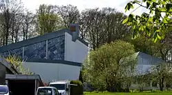 Der Kirchenbau hatte einen unregelmäßigen Grundriss und wurde von zwei Pultdächern bedeckt. Das höhere überspannte den Gottesdienstraum, das niedrigere den Eingangsbereich, die Sakristei und einen Gang. Ein Dachreiter auf der Wand markierte die höchste Stelle des Baus. Der Dachreiter und die umlaufenden Traufen wurden von matt silbernen Zinkblechen verkleidet.