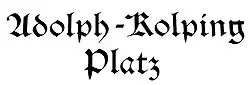 Katholische Kirche am Adolph-Kolping-Platz, 2013, von links nach rechts: Pfarrhaus, Kirche, Gemeindehaus, Glockenturm