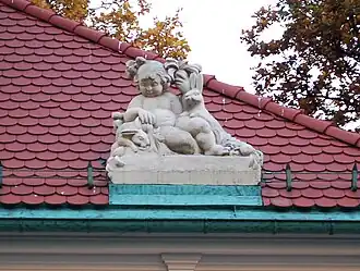 1935 kaufte Mieczysław Broniewski[2] die Immobilie. Der Vorstand der Zuckergesellschaft wechselte in ein Gebäude in der Ulica Koszykowa 8. Broniewski ließ den Palast von Antoni Jawornicki[3] sanieren und umgestalten. Dabei wurden auf dem Dachansatz der beiden Nebengebäude (zur Ulica Mokotowska hin) je eine kleine Statue eines liegenden Amors angebracht; der linke von Hasen, der rechte von zwei Kälbern umgeben. Unter Broniewski wurde der Palast mit wertvollen Kunstwerken ausgestattet.