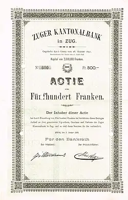- ↑ Zuger Kantonalbank veröffentlicht Geschäftsbericht und Nachhaltigkeitsbericht 2024. Zuger Kantonalbank, 27. März 2025, abgerufen am 16. April 2025.